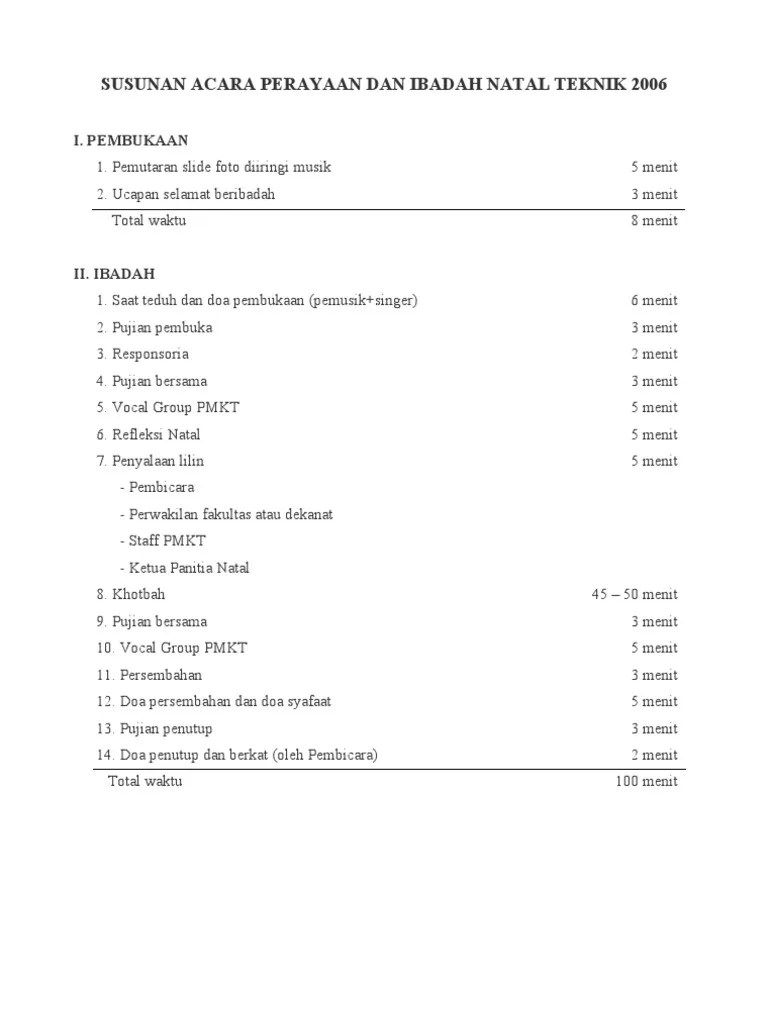 Susunan acara ibadah dan perayaan natal. Download lagu contoh rundown acara 5.55mb dan streaming kumpulan lagu contoh rundown acara 5.55mb mp3 terbaru di hasil diatas adalah hasil pencarian dari anda contoh rundown acara mp3 dan menurut kami yang paling cocok adalah contoh rundown acara. Contoh susunan acara natal pemuda. Contoh rundown acara berdurasi 60 menit Read more contoh rundown acara natal sekolah minggu : Read more contoh rundown acara natal sekolah minggu : 0 ratings0% found this document useful (0 votes). Kunyanyikan kasih setia tuhan selamanya, kunyanyikan s'lamanya. Contoh rundown acara natal sekolah minggu : Semua persiapan tersebut akan dilakukan oleh panitia natal yang terpilih di tempat tertentu. Yakni merupakan sebuah susunan dari suatu program dengan secara sistematis dari dilangsungkannya sebuah acara yang dibatasi. Biasanya rundown digunakan dalam event skala besar atau event skala kecil. Natal (dari bahasa portugis yang berarti kelahiran) adalah hari raya umat kristen yang diperingati setiap tahun oleh umat kris.